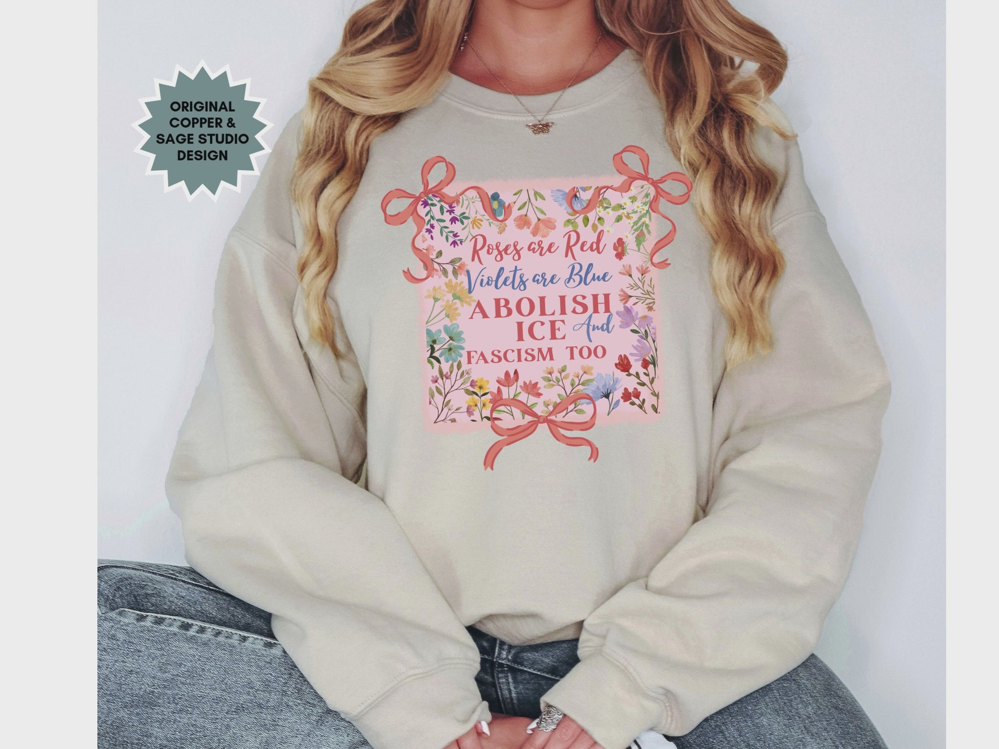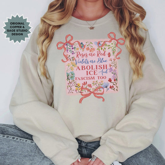 Abolish Ice Fight Fascism Coquette Bow Crewneck Sweatshirt