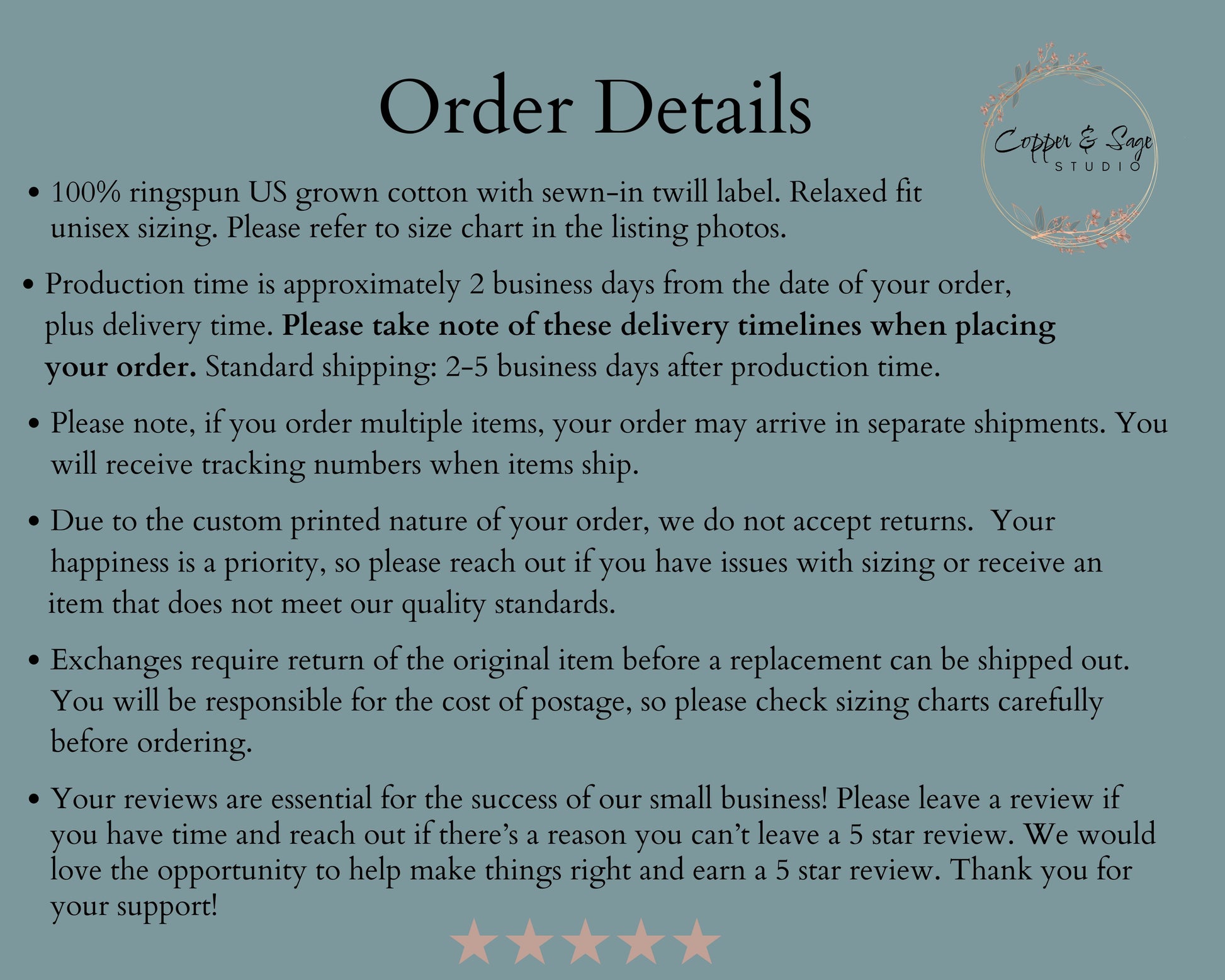 Please note that all items are custom made to order for each customer, therefore we do not offer returns/exchanges. If you have any issues or concerns, please absolutely reach out to us so that we can help.