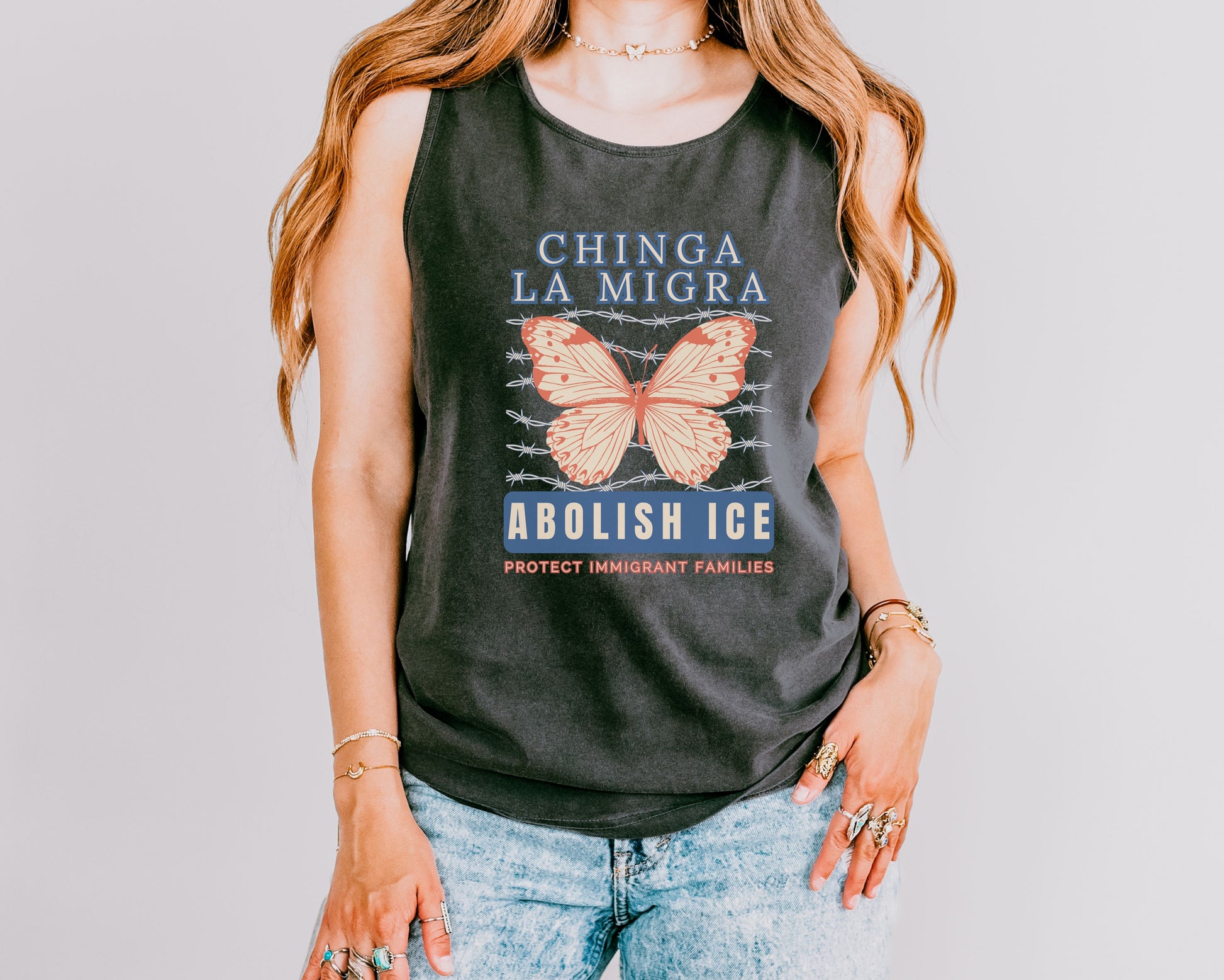 Chinga La Migra Abolish Ice Butterfly Comfort Colors Tank Top