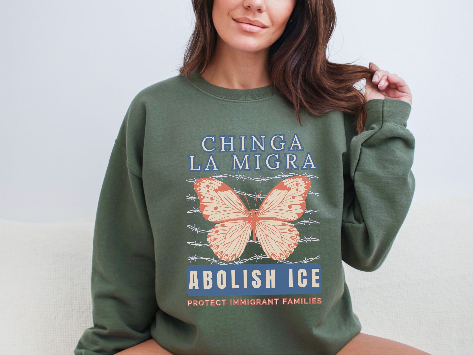 Chinga La Migra Abolish Ice Monarch Butterfly Crewneck Sweatshirt