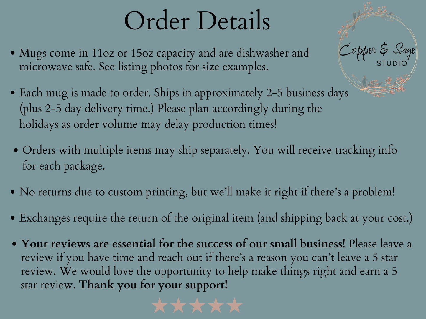 All items are made to order and typically ship within one week from one of our trusted printing partners. Please allow sufficient time for production and shipping.