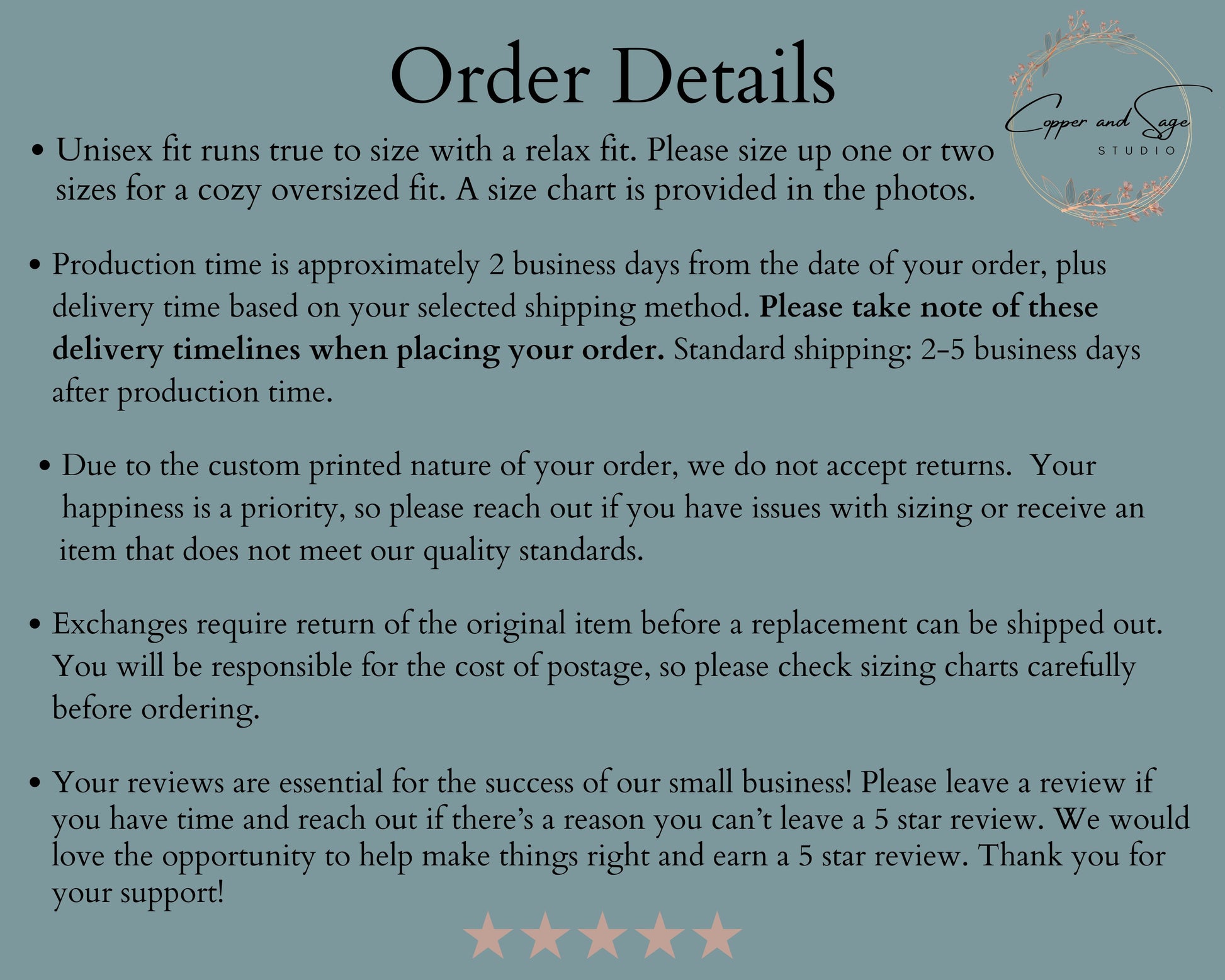 Please note that all items are custom made to order for each customer, therefore we do not offer returns/exchanges. If you have any issues or concerns, please absolutely reach out to us so that we can help.