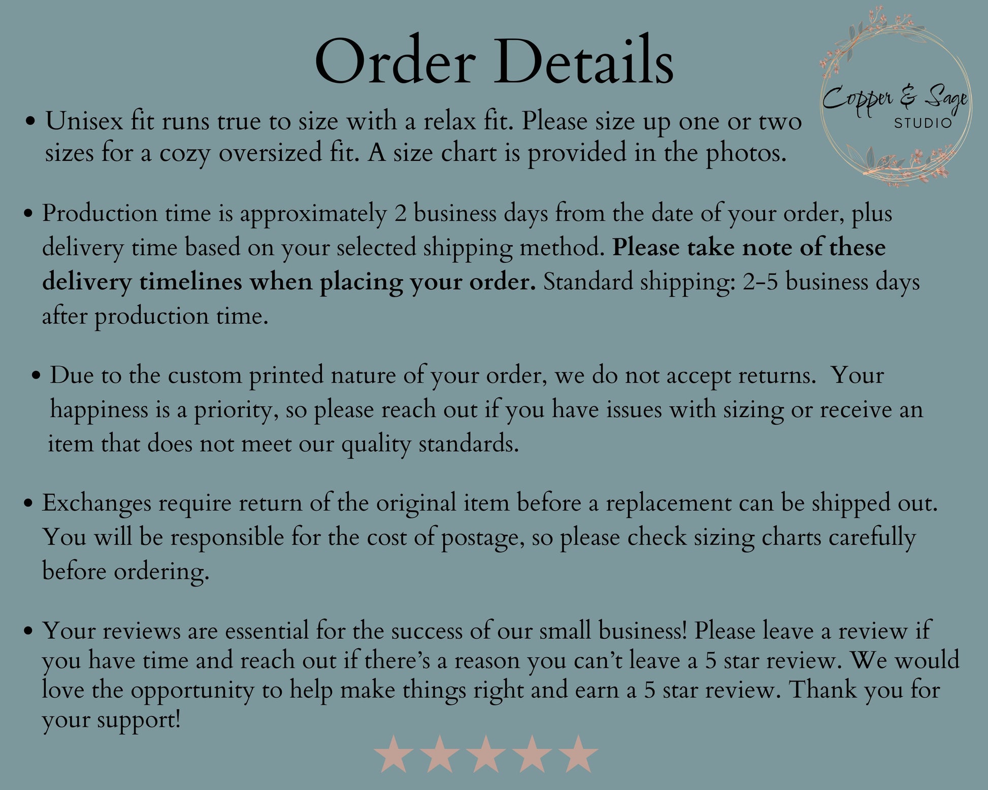 Please note that all items are custom made to order for each customer, therefore we do not offer returns/exchanges. If you have any issues or concerns, please absolutely reach out to us so that we can help.